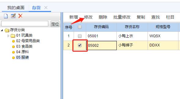1、點擊基礎設置-存貨,選中需要停用的存貨,點擊修改,如圖下: