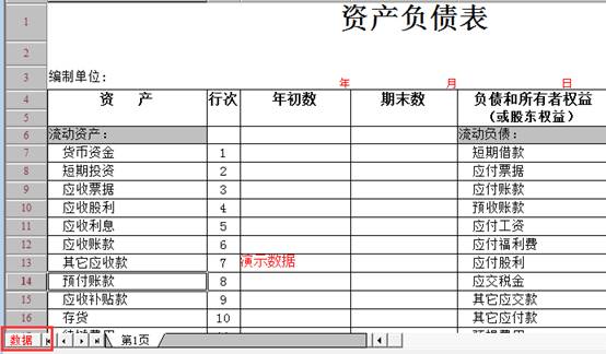 5、生成資產負債表模板后,此時需要點擊“格式”轉換為"數據"狀態,才可取數,如圖下操作: