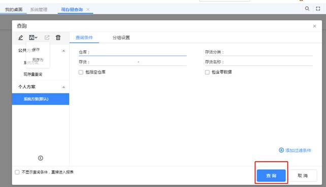 2、現(xiàn)存量查詢,如果同時過濾出相同名稱的產(chǎn)品,但型號不同,卻又可以替換使用,減少庫存積壓,及時周轉(zhuǎn)。點(diǎn)擊“現(xiàn)存量查詢”,不要錄入查詢條件,直接點(diǎn)擊“查詢”,如圖下操作:
