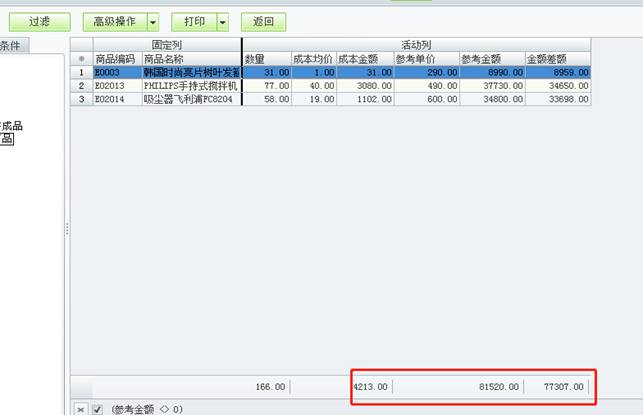 4、最后系統會產生成本金額與參考金額,并算出差額,也就是可盈利金額,如圖下: