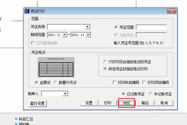 2、進(jìn)入憑證打印界面,點(diǎn)擊預(yù)覽,如圖下: