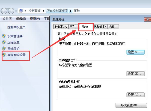 鼠標右擊桌面我的電腦-屬性,然后點擊高級系統設置-高級,打開“環境變量”,如圖下操作: