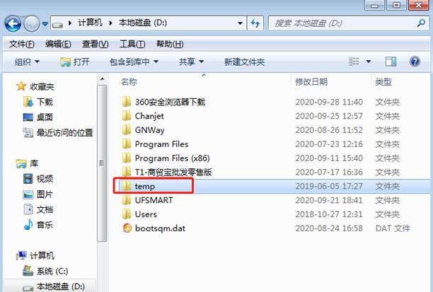 方法3:修改操作系統環境變量,首先在電腦硬盤建設個“temp”文件夾,如圖下: