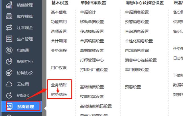 1、也是按第一種情況來增加2021年度,并同步科目到2021年。當財務做完2020年賬后,按第二情況來操作,結轉2020年余額到2021年,不過結賬的順序是先進行業務結賬,再進行財務結賬,如圖下: