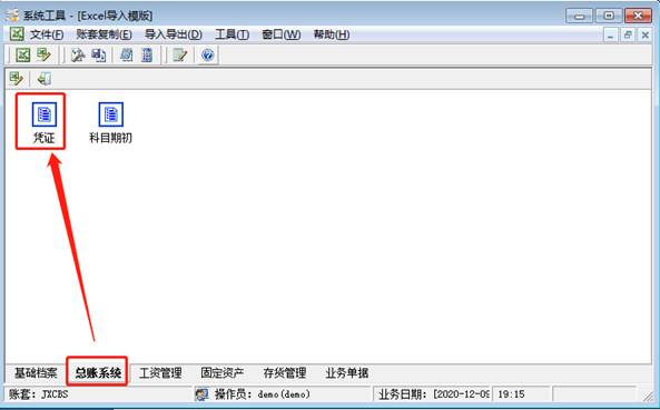 4、雙擊打開“總賬系統”頁簽里的“憑證”模板,如圖下: