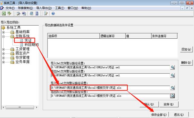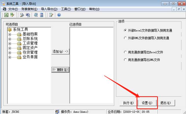 8、路徑設置完成后退出,把憑證添加到已選項目,并點擊執行,如圖下操作: