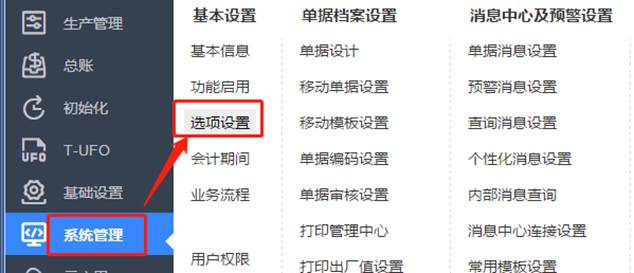 1、首先來啟用貨位管理,登錄用友T+系統,點擊系統管理-選項設置,如圖下:
