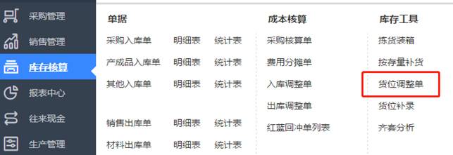 9、補充2:貨位錄錯了,如何調整到正確的貨位呢?點擊庫存核算-貨位調整單,錄入調出貨位與調入貨位并保存審核,如圖下操作: