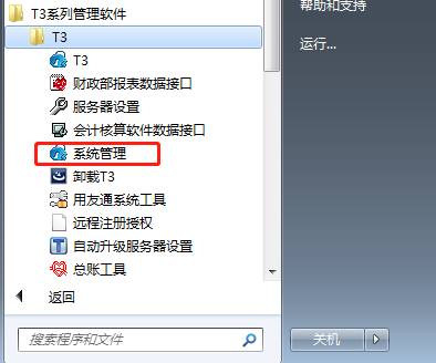 1、數據備份只能在服務器才可操作,雙擊桌面“系統管理”圖標或者點擊開始-程序-T3系列管理軟件-系統管理,如圖下:
