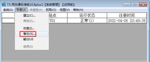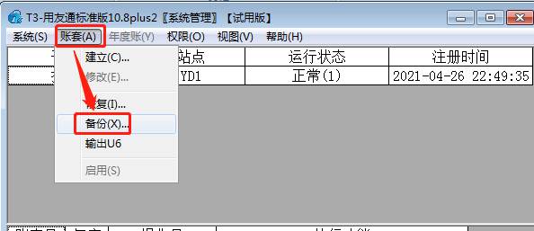 3、點擊賬套-備份,如圖下: