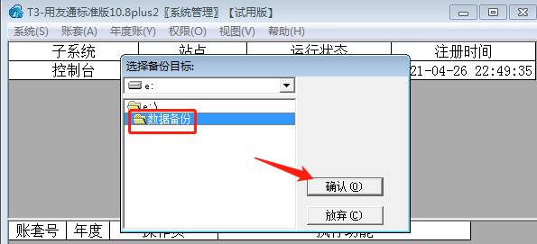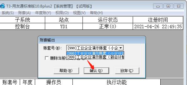 4、選擇需要備份的賬套號,點確認,如圖下備份998賬套: