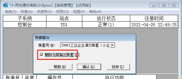 7、數據刪除,點擊賬套-備份,選中賬套號,勾選“刪除當前輸出賬”并確認即可,如圖下: