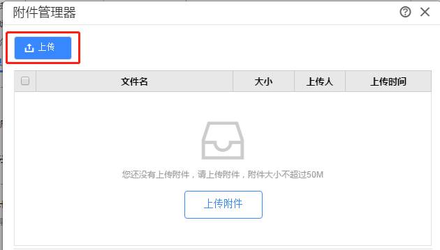 進入附件管理器,點擊“上傳”,選擇相應的文件上傳即可