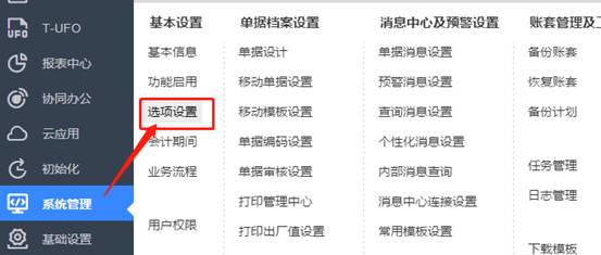 1、 登錄用友T+,點擊系統(tǒng)管理-選項設置,如圖下: