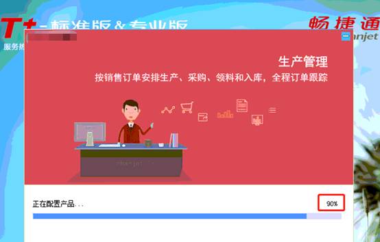 問:如圖下,用友T+安裝到90%,就一直卡著不動了,等了半個小時依然是圖下的界面