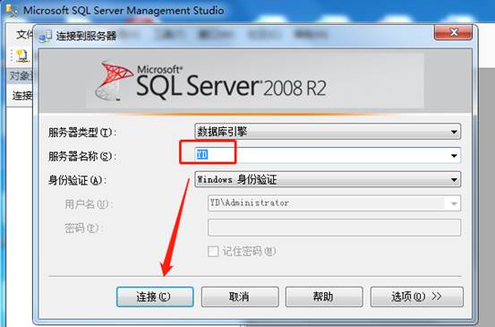 1、進入數據庫,打開SQL Server Management Studio,輸入服務器名稱并連接,如圖下: