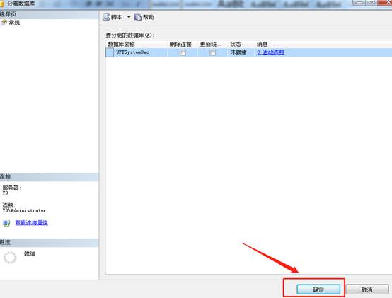 4、進分離數據庫界面,點擊確定即可,如圖下: