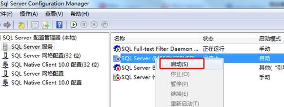 選中SQL Server(MSSQLSEVER),鼠標右擊啟動,如圖下操作: