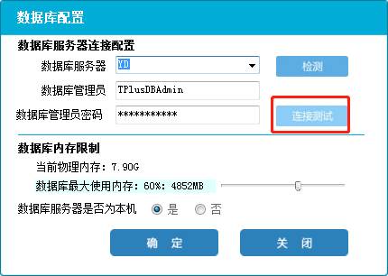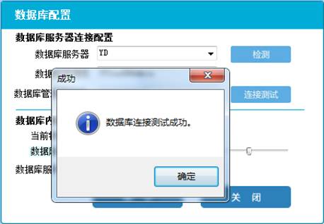 進數據庫配置界面,點擊“連接測試”,當提示數據庫連接測試成功并確定即可,如圖下操作:
