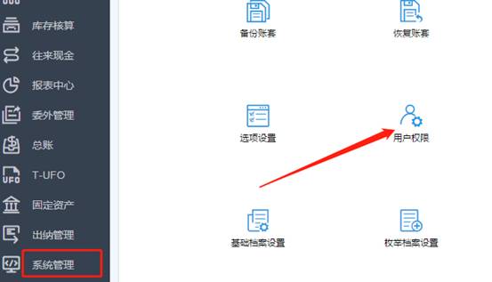 2、點擊系統(tǒng)管理-用戶權(quán)限,如圖下:
