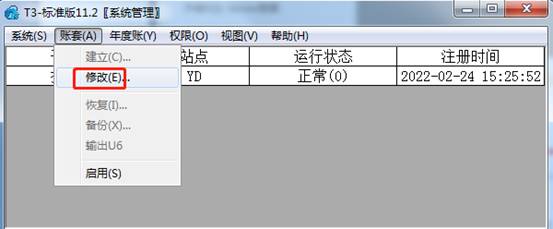 3、登錄后,點(diǎn)擊賬套-修改,如圖下: