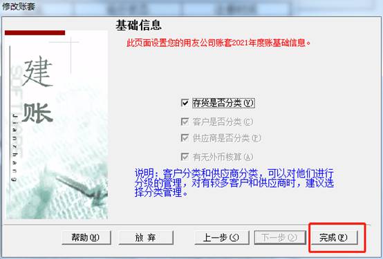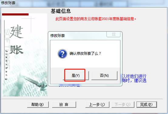 6、繼續(xù)點(diǎn)擊下一步,最后點(diǎn)擊完成并確認(rèn)修改賬套,如圖下操作: