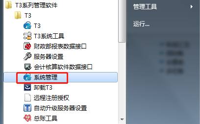 1、首先修改核算單位名稱只能在服務(wù)器操作,進(jìn)入服務(wù)器電腦后,點(diǎn)擊電腦左下角開始-程序-T3-系統(tǒng)管理,如圖下: