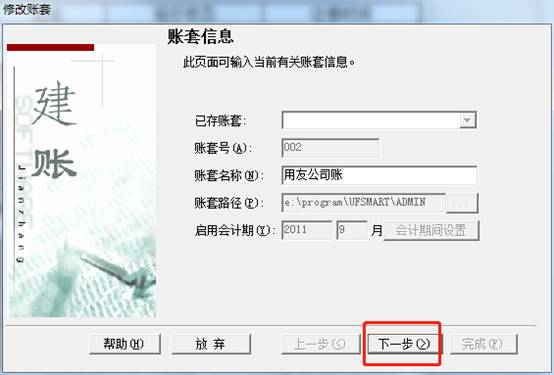 4、點(diǎn)擊下一步,可以看到單位名稱為“用友公司”,如圖下操作: