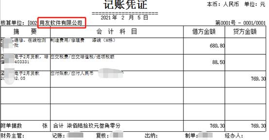 7、最后再來打印憑證,核算單位名就改過來了,如圖下: