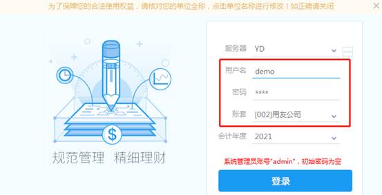 2、點(diǎn)擊系統(tǒng)-注冊,輸入用戶名,此用戶名為賬套主管(demo)或者有權(quán)限的賬號(hào),然后輸入密碼并選擇好要修改的賬套,如圖下操作: