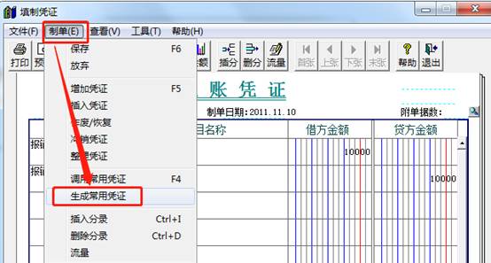 進入該憑證后,點擊制單-生成常用憑證,如圖下: